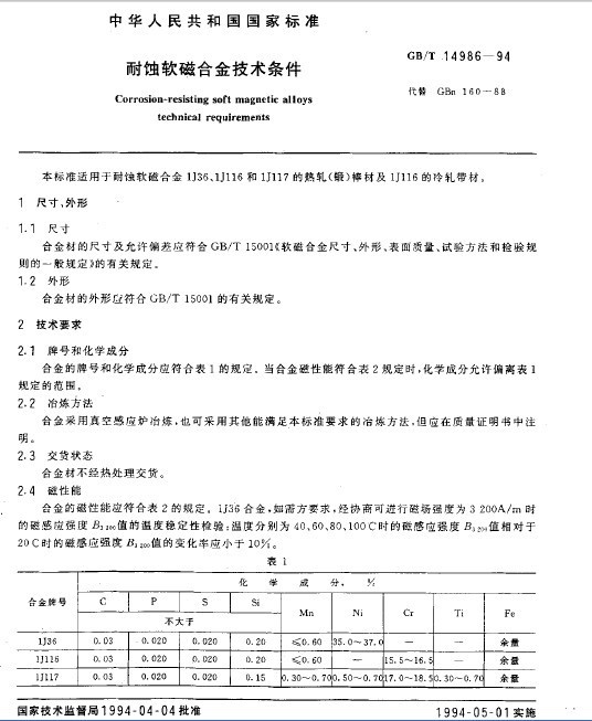 衡陽(yáng)市金則利特種合金股份有限公司成立于1999年,公司主營(yíng)耐蝕軟磁合金,為湖南省高新技術(shù)企業(yè)。公司自成立以來(lái),即致力于耐蝕軟磁合金的研發(fā)。公司已具備年產(chǎn)耐蝕軟磁合金8000噸的生產(chǎn)能力。